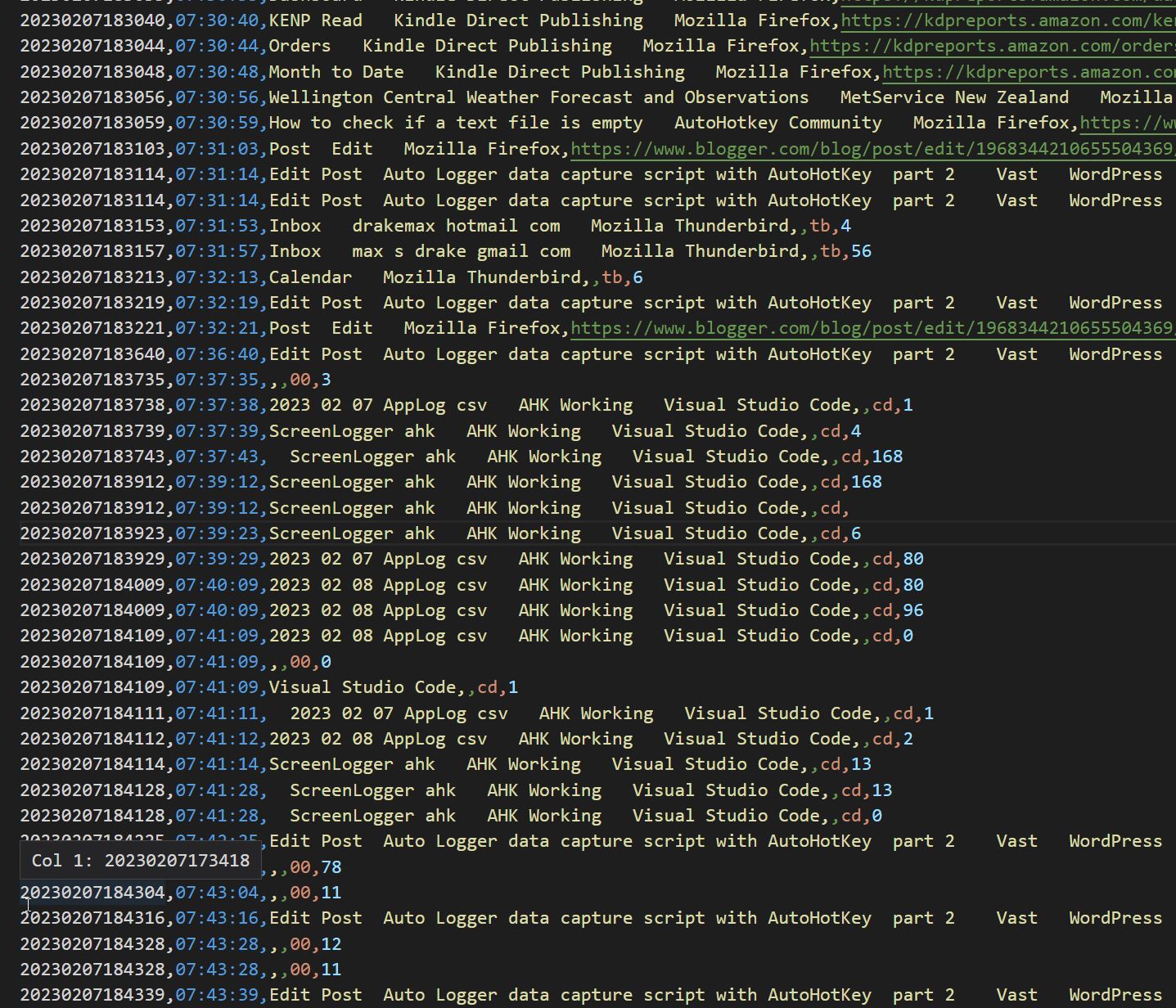 In Auto Logger and timesheet exploration with AutoHotKey and Python Part 1 I gave an overview of the project, in this article I want to go into the development of the background process of auto-logging computer activity on the PC. My initial start, as mentioned in the previous article was to start with the code