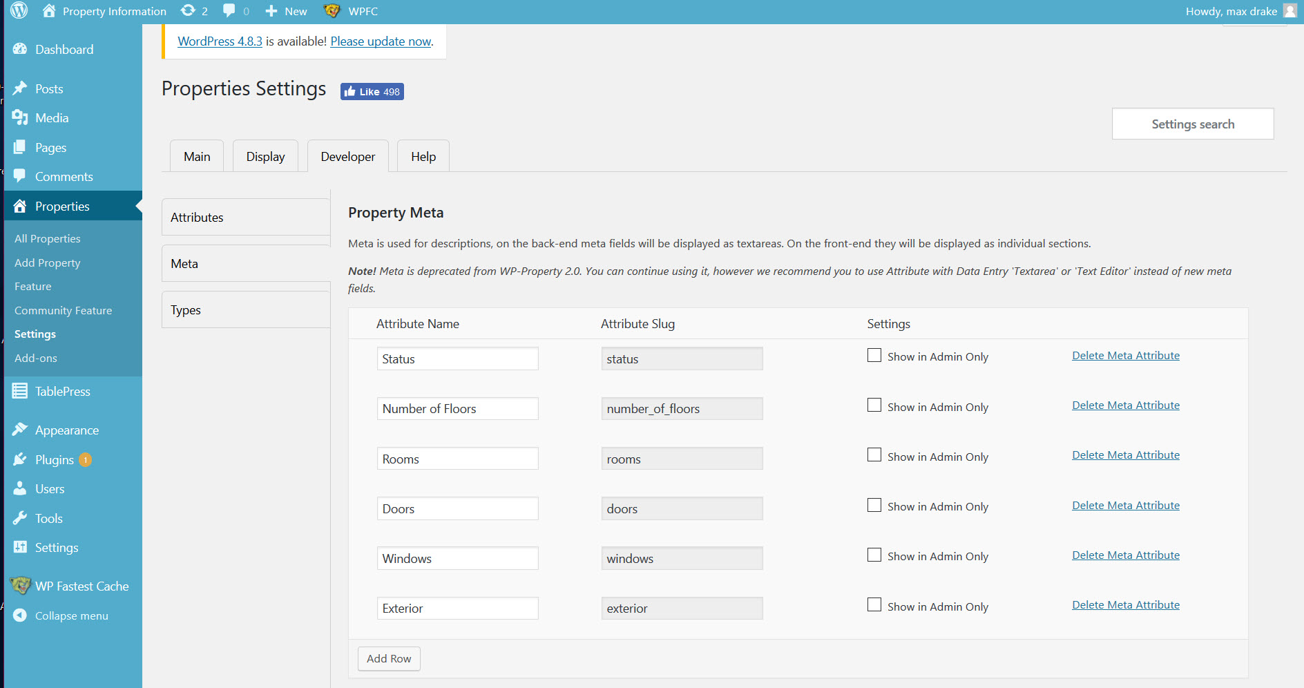 - Text Area. Initially I dumped lots of information here. I then found that under Properties/Settings/Developer Tab under Meta you can add Meta Types. As you can see in the second image below this creates a space where you can put relevant data about a particular item of the property. I divided it up into room/door/window/exterior data areas that I could put specific data that has been extracted into these areas ( Note I used data extracted from 3D PDF models via CSV to my Excel Macro that filtters the data into these specific headings- See my blog posts on 3DPDF’s and specifically the Data Extraction from 3DPDF post.)