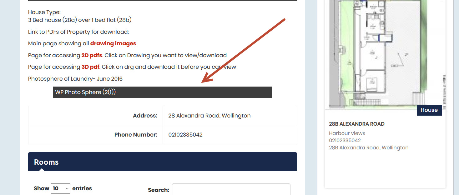 I like panoramas, One photo gives you a great overview of a room and shows you all the small features (such as lights/sockets/ switches etc (where not hidden by furniture )) so am keen to use them on the site. There are a couple of free plugins available and I have gone with the WP Photo Sphere rather than iPanorama as I have used it on other sites and its pretty good. Also the photo collapses to a bar and needs to be clicked on to be used. This helps page load times and you only need to view the one you choose. See this blog for exploration of panoramas, and this blog for general use of panoramas.