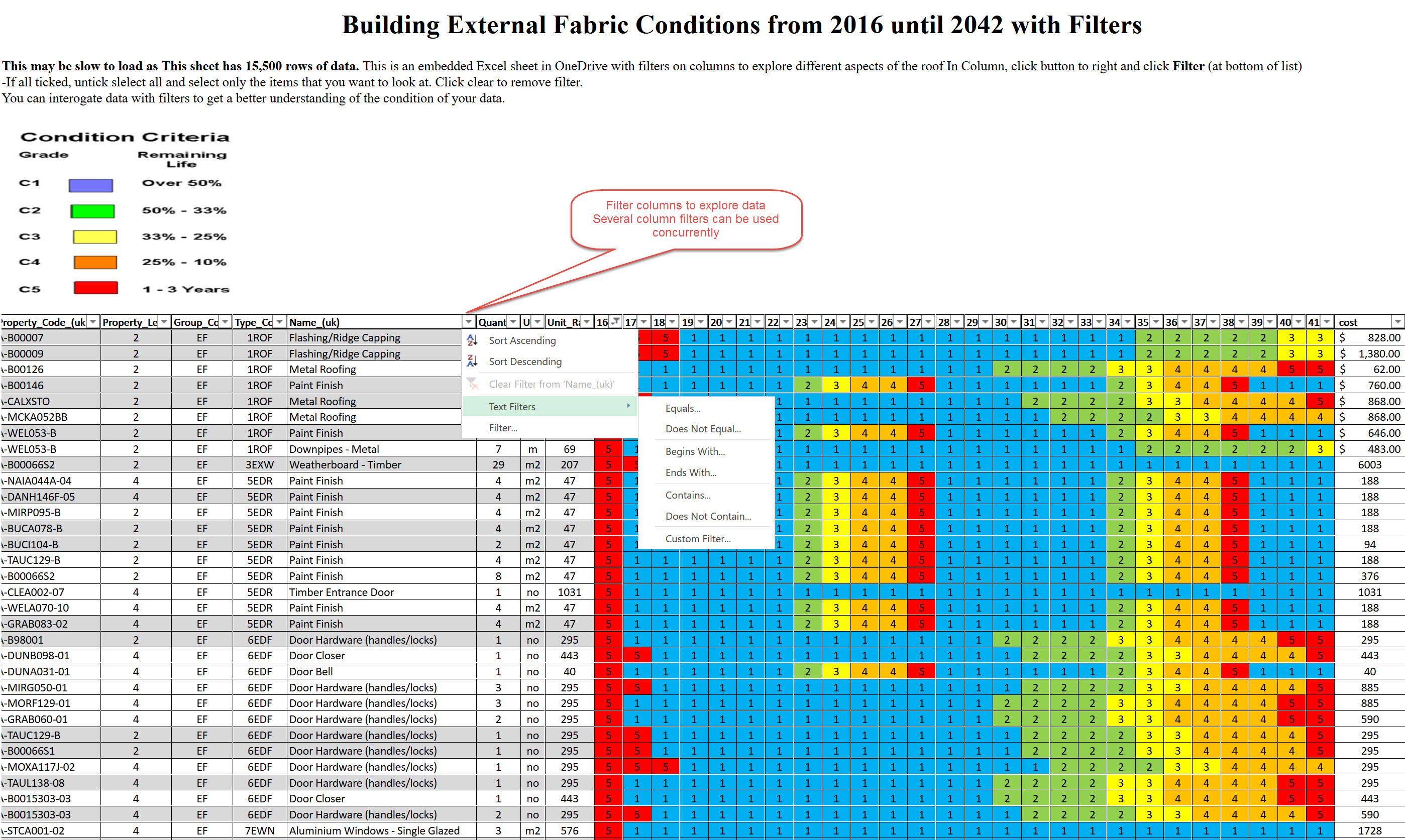 Excel filterable Heatmaps for Asset Condition over time online