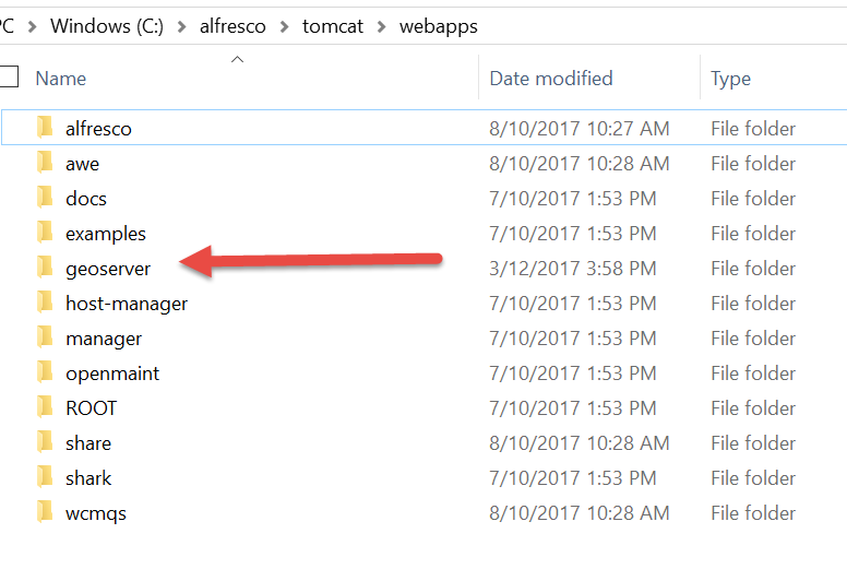 I also just installed the Geoserver 2.8.3.war file in the C:\alfresco\tomcat\webapps directory and then ran the bat start file to start tomcat.