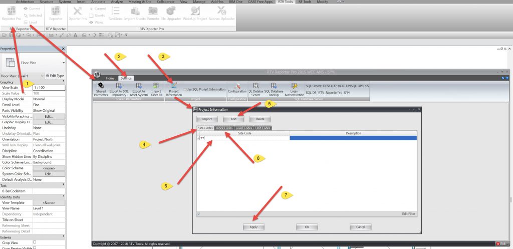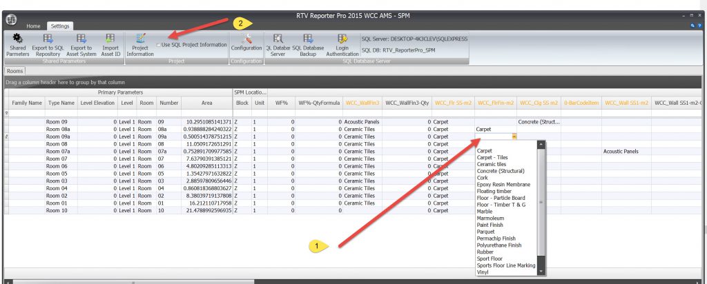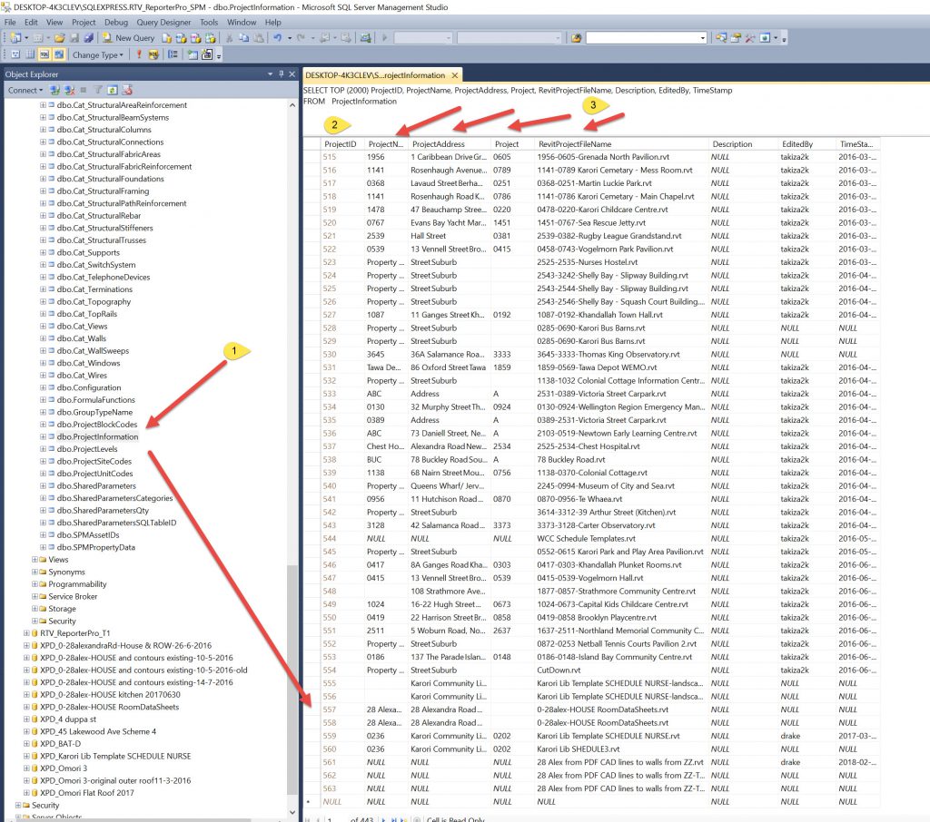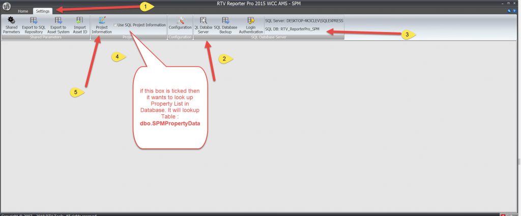 Item 2 is the SQL Database Server, you will see that Item 3 is the Database instance, RTV_ReporterPro_SPM, so correct database is linked to Revit.