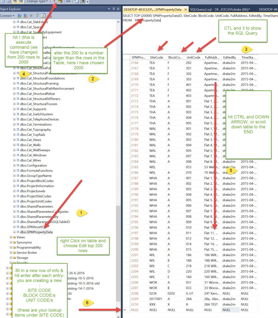 1/ Lookup Table where you lookup the SITE CODE in the database table ( dbo.SPMPropertyData). YOU HAVE TO TICK the BOX for USE SQL PROJECT INFORMATION. It will look up Site Code and show you the BLOCK & UNIT CODES associated with that site. You then click on the ones that the model is associated with (or multiple units) and it will associate THIS FILE/MODEL (actually file name) with your selected codes.
