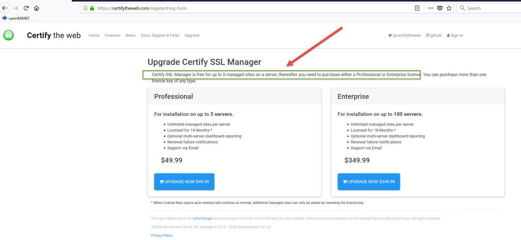The interface is a bit confusing with the 2 main buttons in the middle that you want to press (item 4). You do and they take you to a login for the paid versions. See 2 images below where pricing is shown.
