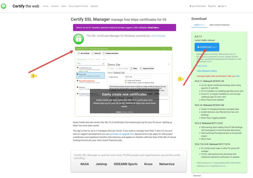 Free SSL certificates can be obtained Lets Encrypt. It is based on a linux platform so that was where my difficulty lay as I am on a windows VPS (Virtual Private Server) so there were all these arcane things I had to due due to the windows environment. Not anymore. There is Certify SSL Manager which will manage free https certificates for IIS.