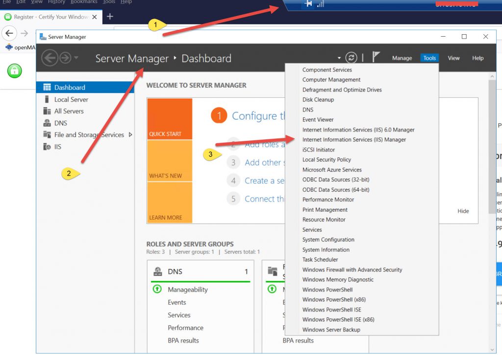 We now have to go into the Windows setup. Go to Server Manager & Open IIS Manager