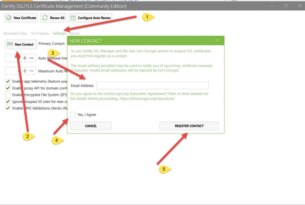 At some point early in the process you are asked to give a NEW CONTACT for the certificates (This is used in case Auto Renewal does not occur (more about this later)