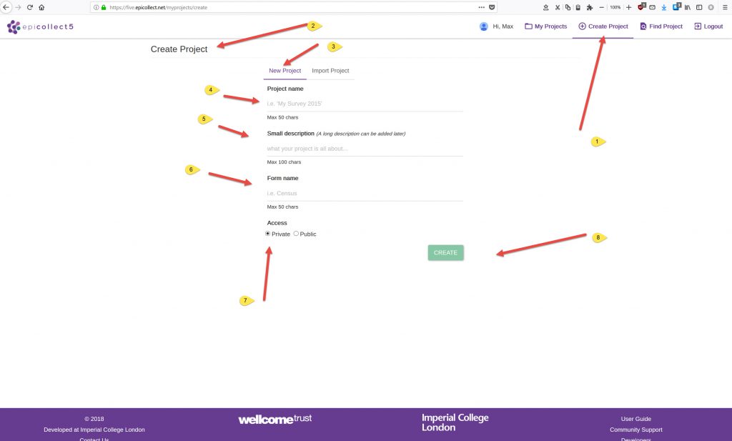 You then CREATE A PROJECT and then build forms. The Interface is pretty sensible and doesn’t take too much clicking around to find what you need.