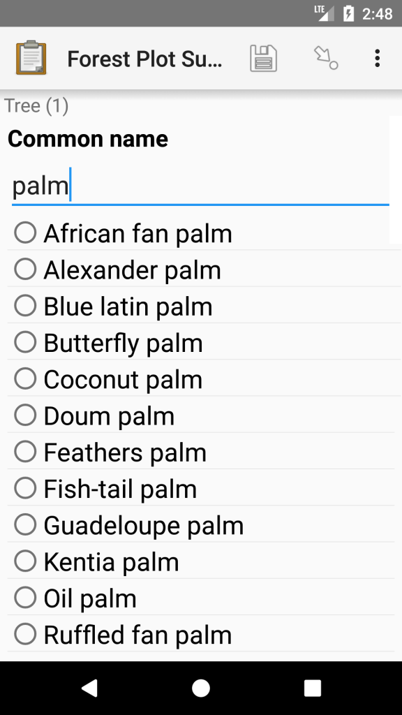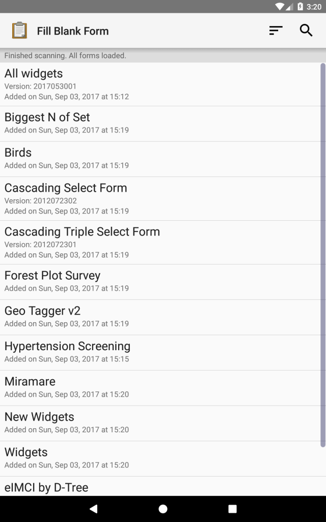- If you only partially fill out a form and upload it to the server, that form has gone from the mobile device and is now residing on the server only. To put it back on the device to complete it requires you to go to the server via a browser and download a CSV of that Survey and load it onto the mobile device that you are using to do the update of that data. I have not found an easy way of doing this. It also seems a bit awkward, as you will most probably go back and do a follow up of a survey and need the original data, it seems a bit crude. This would mean uploading about 3 CSV files for the nested survey that I was developing (process yet to be tested).