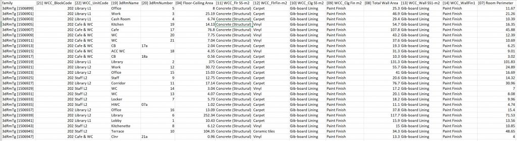 On a larger file, for some reason, I’m not sure if its in the 3D PDF export to CSV, or the Python importing/ordering processes, but there seems to multiple columns for a few of the fields, such as BlockCode , UnitCode etc, with some of the data distributed randomly between these columns. I noticed this on the StJames Theatre 3D PDF model. It does not occur in the Excel Macro process that orders them as you’d expect.