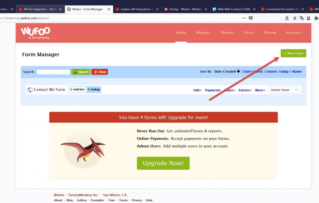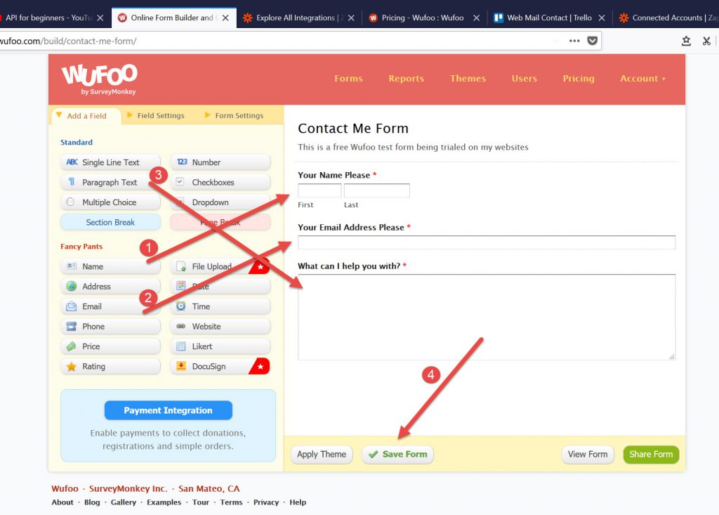 After signing up to free accounts in Wufoo, Trello & Zapier, I got the Wufoo web form “Contact Me” page up and running and it sent information to the Wufoo account