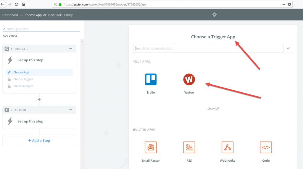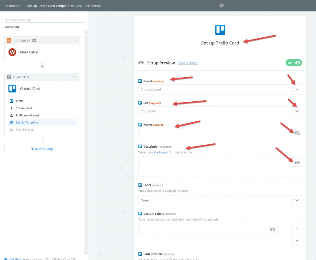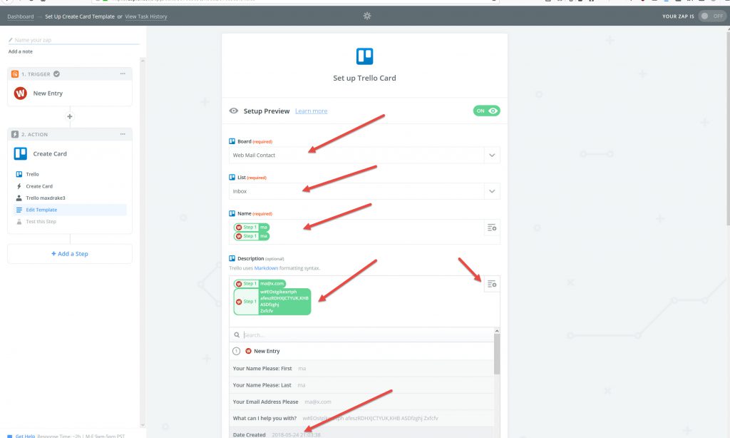I clicked on this video and decided to try to set up the process that is demonstrated from about 30 minutes in on the video, connecting Wufoo Contact page on my website to a Trello shareable list Dashboard via a Zapier integration.