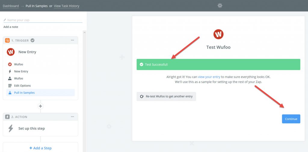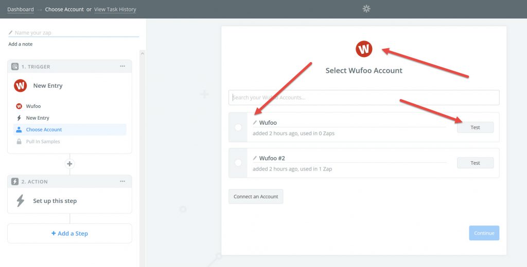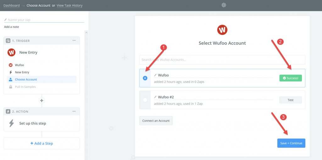 I retested this process with Cognito forms instead of Wufoo and the process works fine. Another app with a free account.