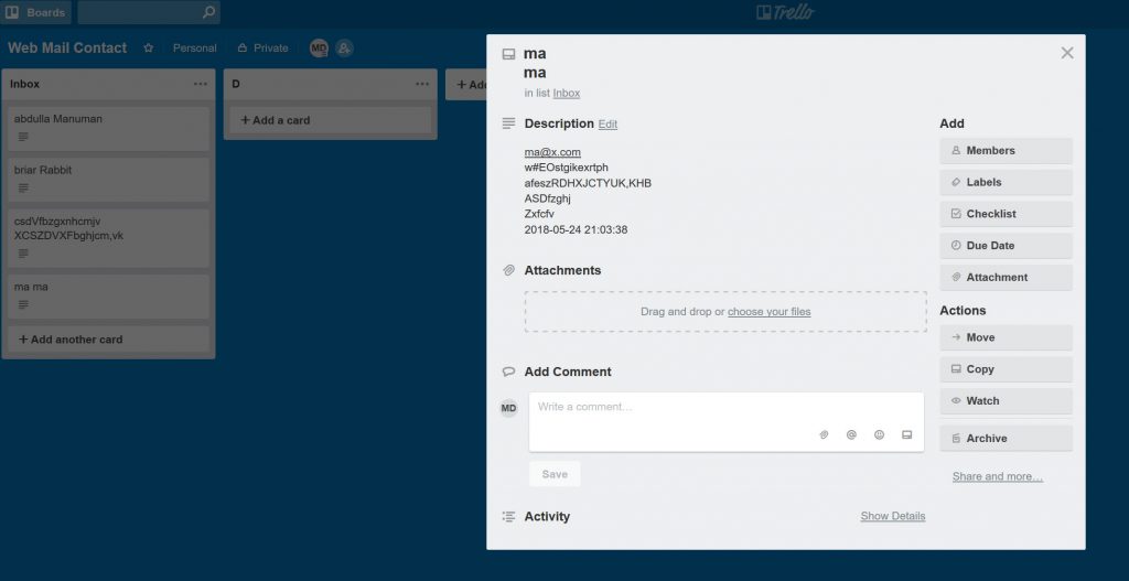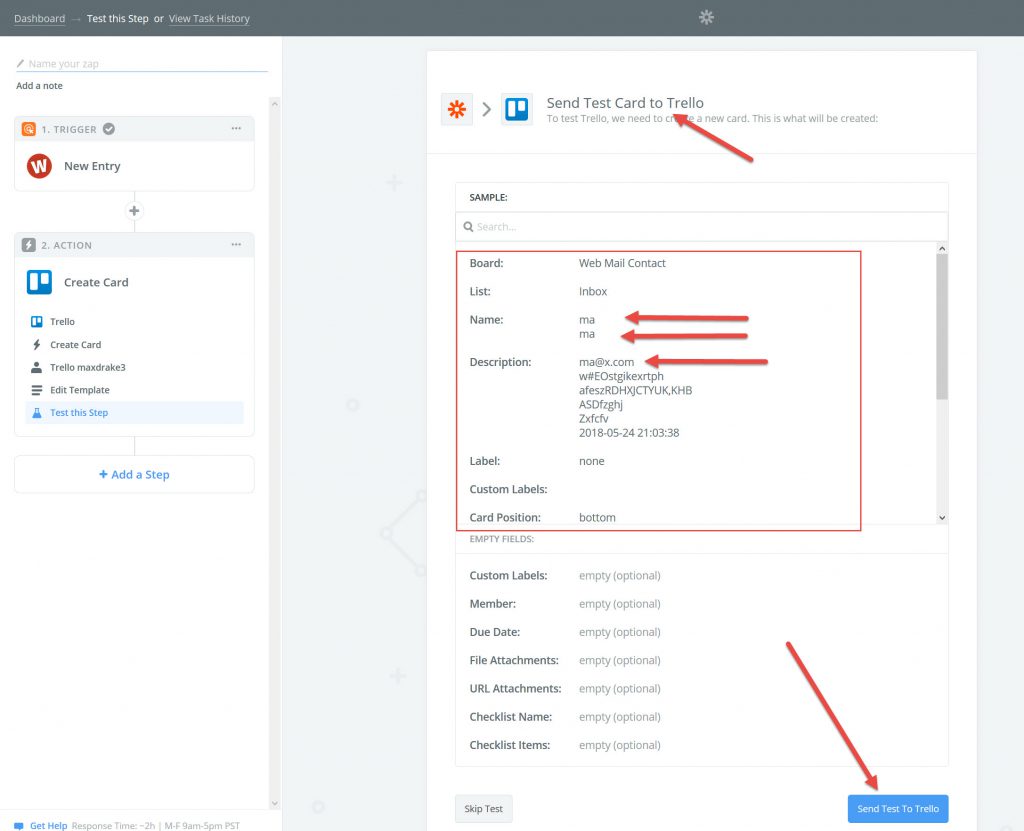 So the information has moved from the Website “Contact Me” Page to Wufoo site and then been passed through the Zapier Site to the Trello site. Which says that all the API connects work. Just a shame that the Wufoo free plan is so limited.