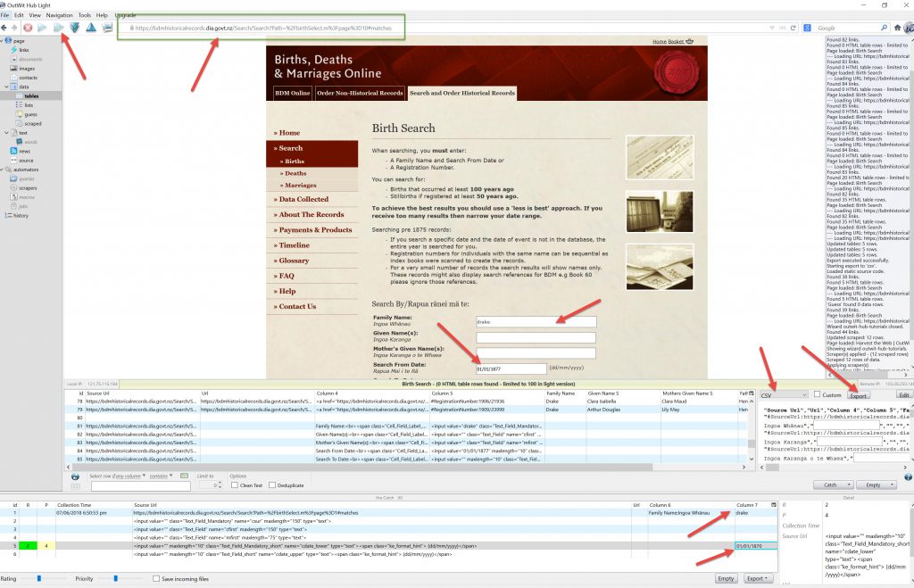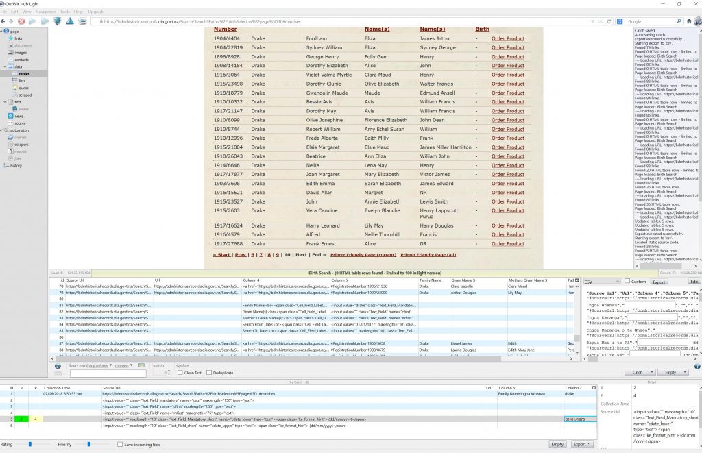 Outwit Example also using Google Search site:nz database ‘search by”