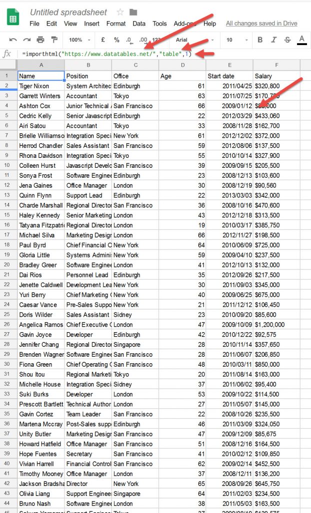 Google Spreadsheet importhtml()
