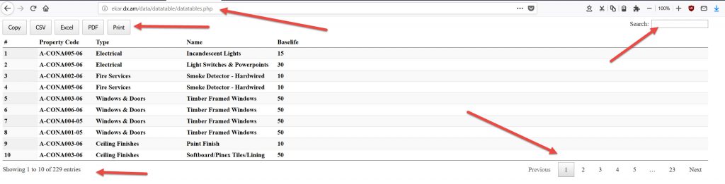 - Have an idea of the data (bottom left number of rows shown & bottom right Pagination)