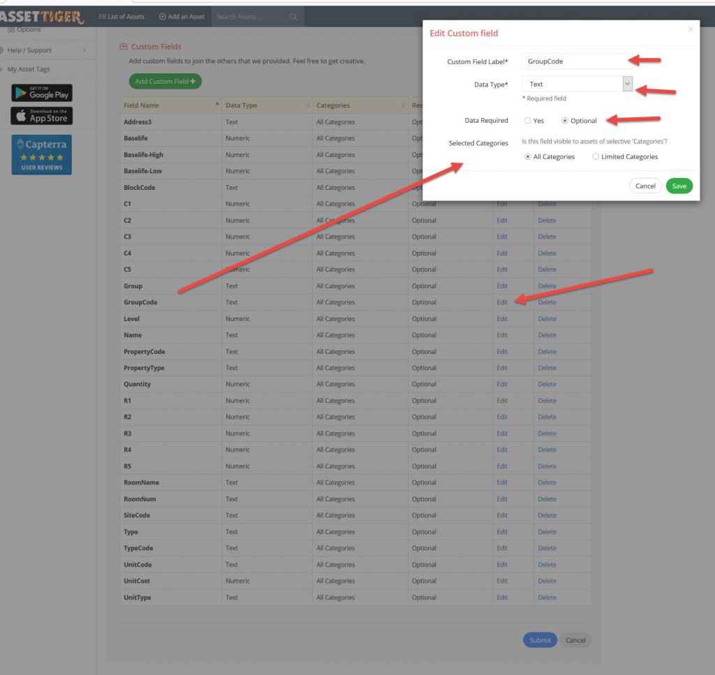 - Unlimited custom asset categories