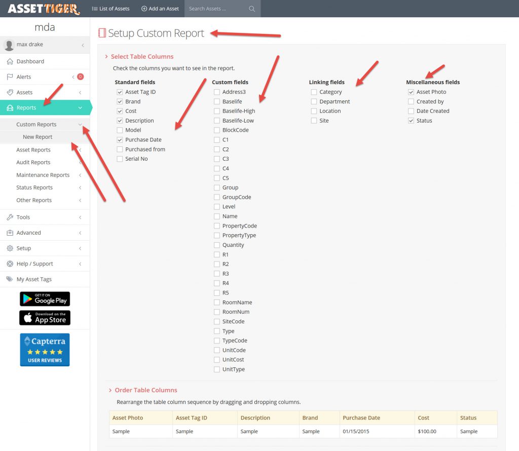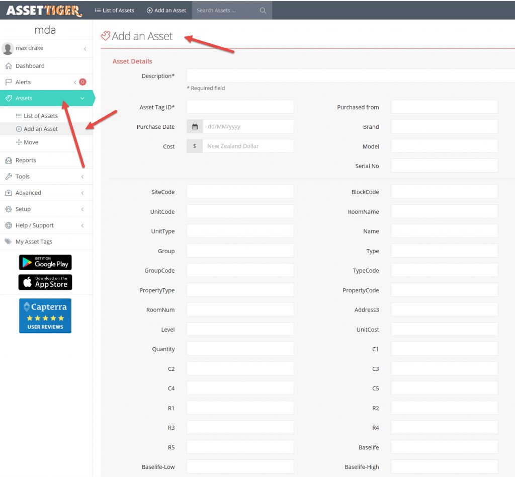Asset Tiger is really an Asset Register and you can do a couple of simple things with it such as Maintenance Scheduling, Warranties management and Barcode scanning and Ability to track assets by asset tag, id, person, location, area, category, department, warranty. It also has a nice reporting tool too, you can even automate it to send you the reports by email daily or at other periods. A nice feature.