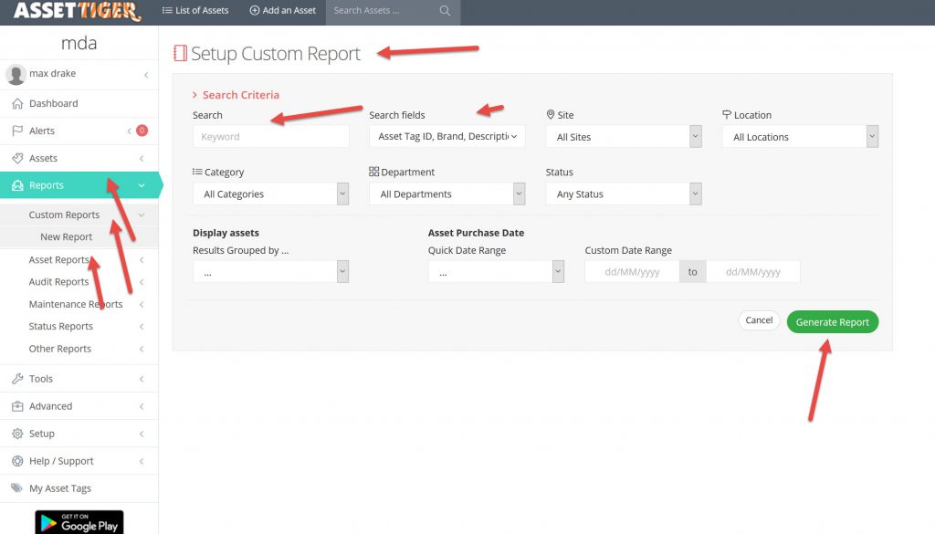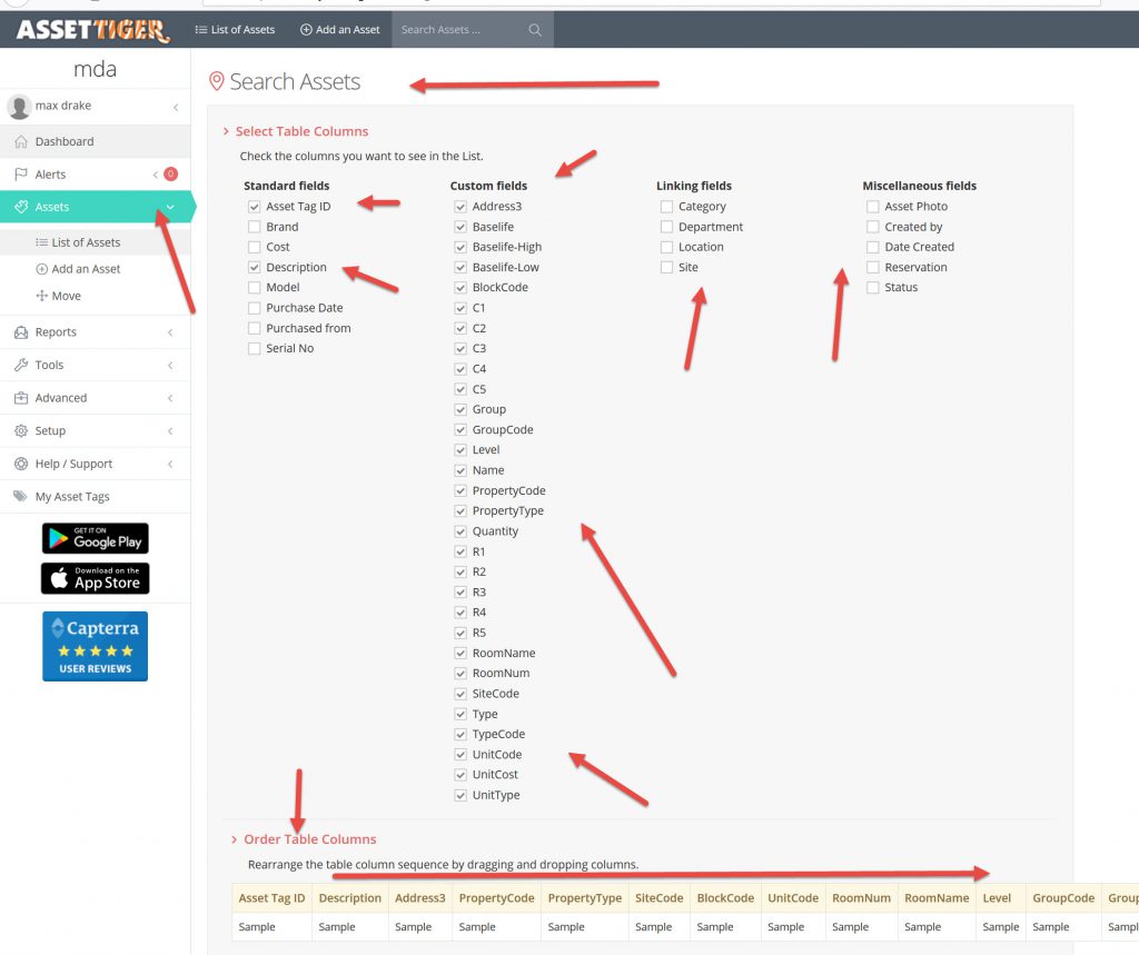 - Ability to track assets by asset tag, id, person, location, area, category, department, warranty