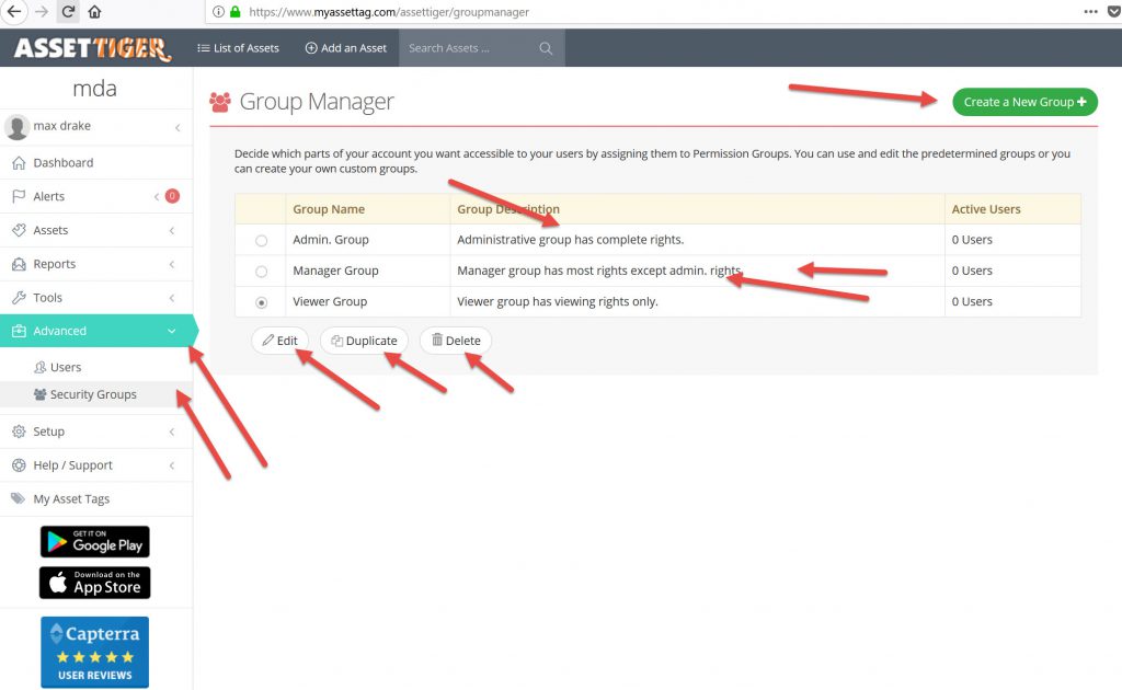 - Unlimited custom group security and privilege levels for users