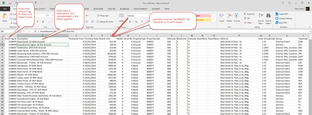 NOTE: An extra step I had to do was to Change, in Excel, the Cell format on the COST filed to “NUMBER” from “General”. This caused errors all the time until I got it right.