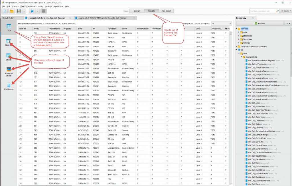 In the free version of RapidMiner Studio I read somewhere that you couldn’t connect to a database, or cloud AWS S3 or DropBox. I have just downloaded RapidMiner and it gives you a 30 day trial period for full tools for a while then limits you to the 10,000 rows of data. So far I have been able to link to my MS SQL database, to DropBox and also a Twitter feed. I see that you can get a 5GB free AWS S3 account for free so if I set that up I could connect to that too. An eclectic mixture of connections but all useful. Apparently there is even a NoSQL Mongo connection too.