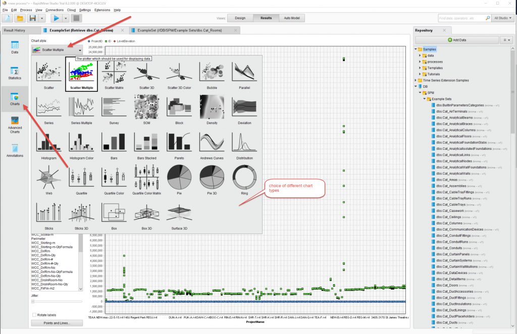 Once you have chosen your chart type (Scatter, bar, pie etc) then you can choose, based on chart type, what data you want to display.