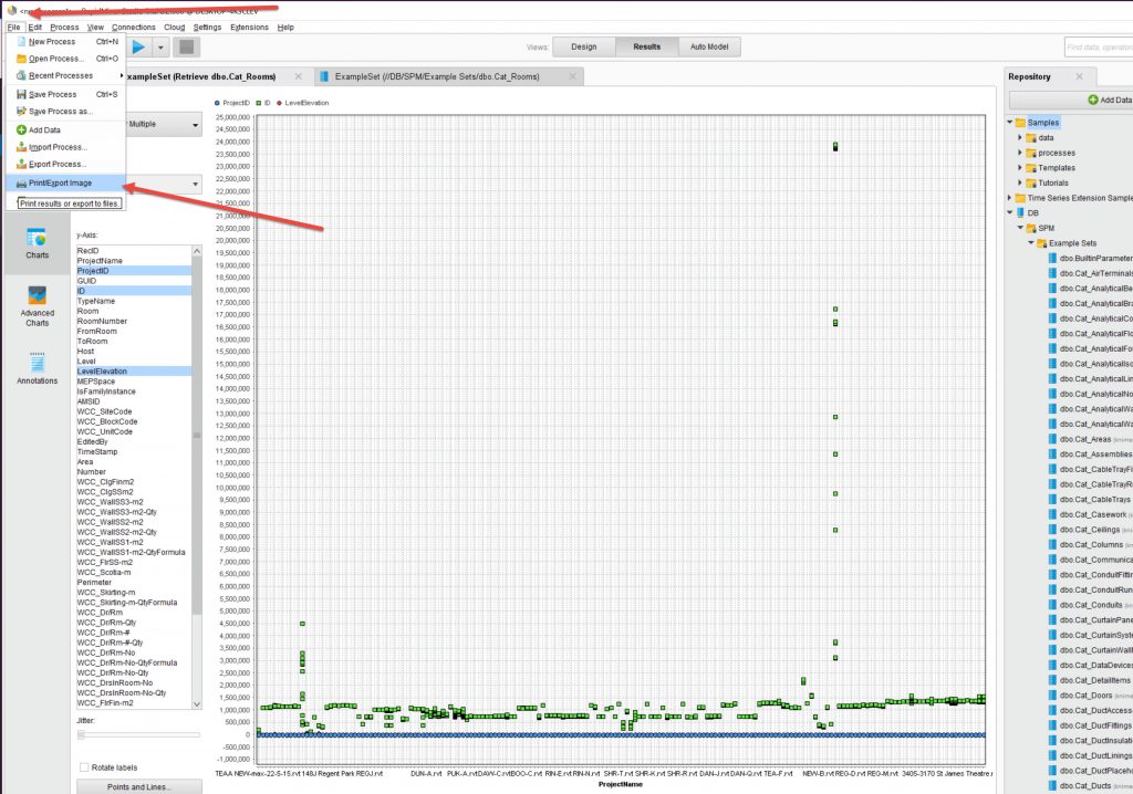 To export charts, go to FILE and choos Print/Export Images and this brings up the Print pop-up box