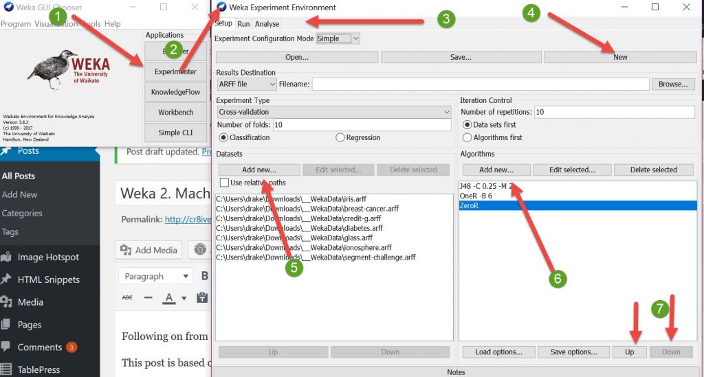 Some of the screenshots below from the video’s that have been developed and are presented by Ian Witten of Machine Learning Group University of Waikato in NZ. I have not got his permission to use them but cite him as the source of this information.