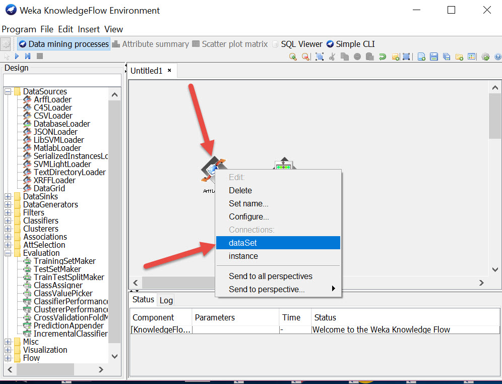 Right click on first node and connect it to the 2nd by selecting dataset (in this example , but instance in the last slide).