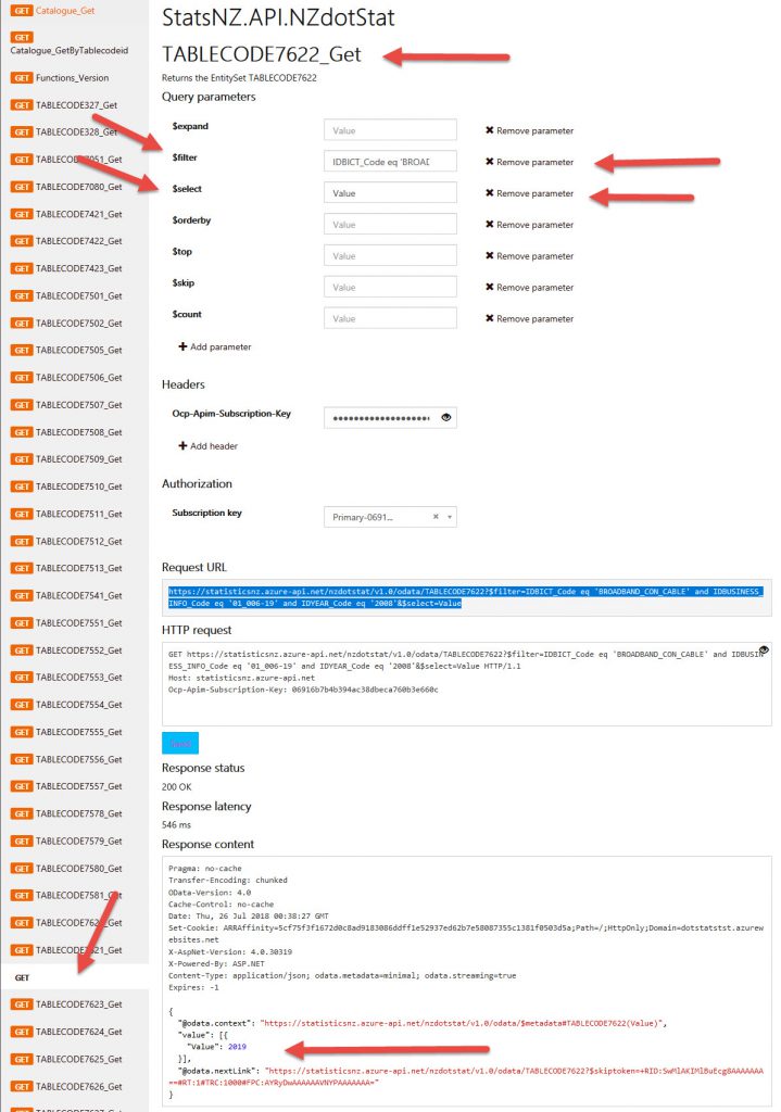 https://statisticsnz.azure-api.net/nzdotstat/v1.0/odata/TABLECODE7622?$filter=IDBICT_Code eq 'BROADBAND_CON_CABLE' and IDBUSINESS_INFO_Code eq '01_006-19' and IDYEAR_Code eq '2008'&$select=Value