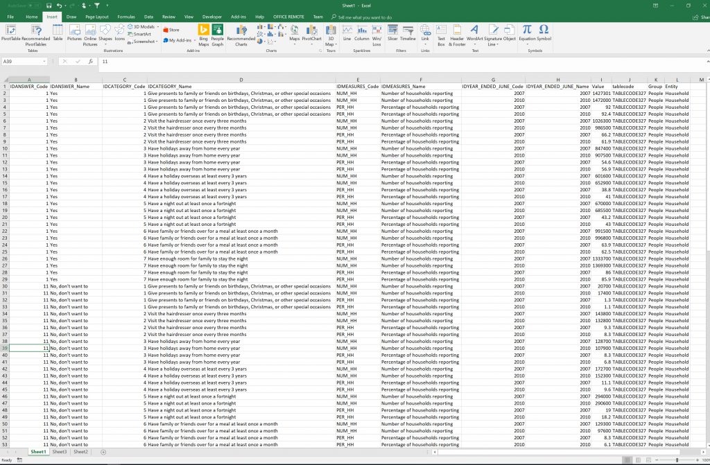 Using the API you can draw down updated raw data, and specifically filtered data that is relevant to your project, in the case above a few of the Code columns could be filtered out as they are not used.
