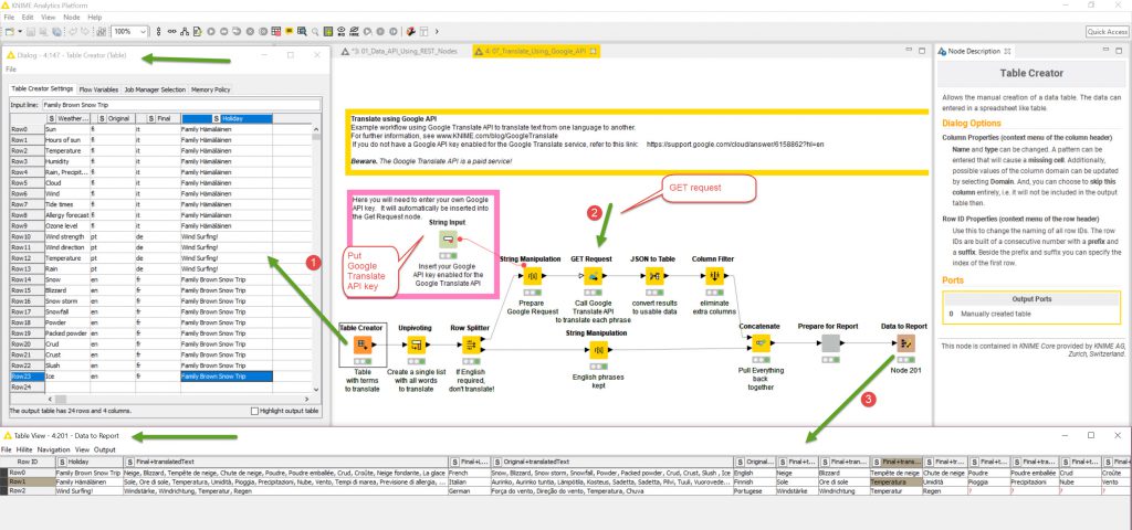 Knime 3. API access and workflows