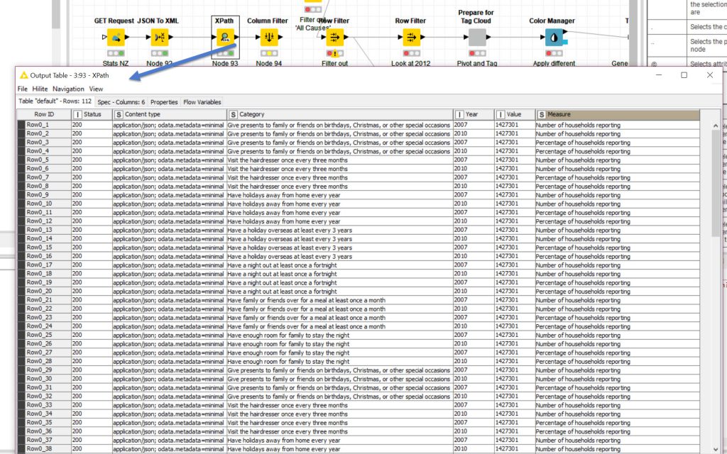 Using a Pivot Table to display the data (similar to Stats NZ Site) . I have noticed that there is a pivoting node and a database pivot too, so the pivoting may have been able to be done in Knime.