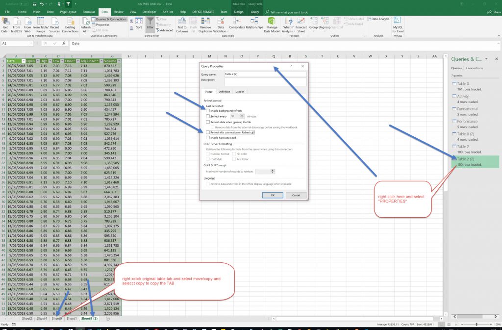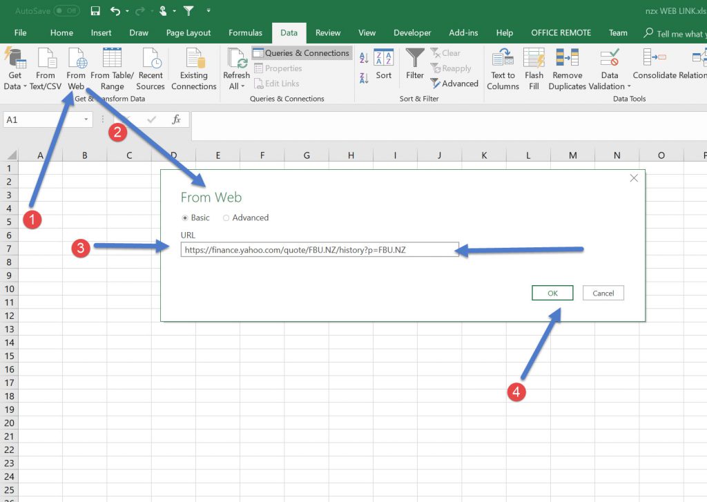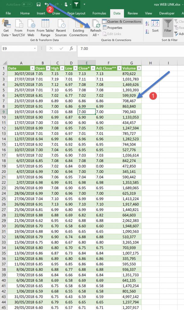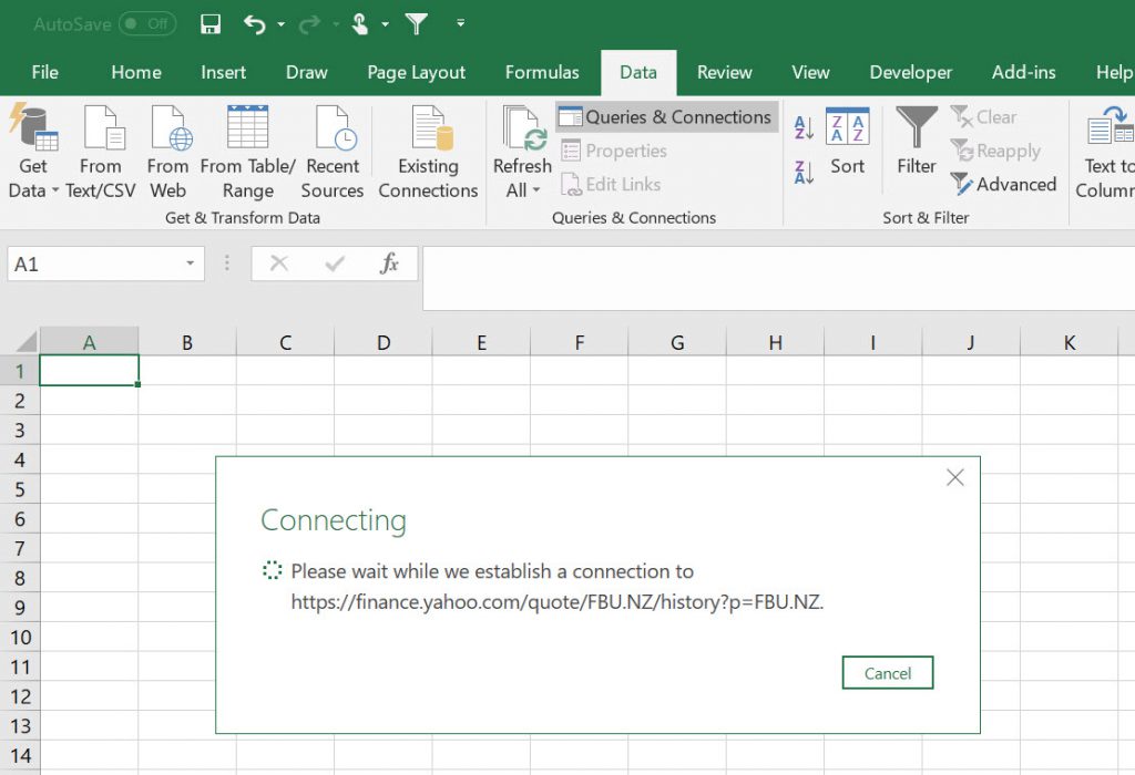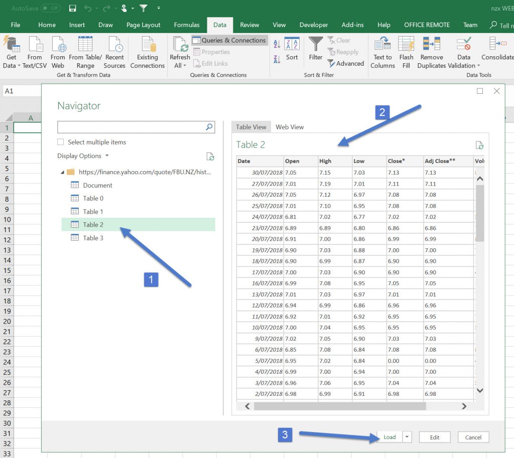 So I looked at grabbing data from the NZX web page using Excel to grab data. I ended up setting the Main Board NZX table up quite easily.