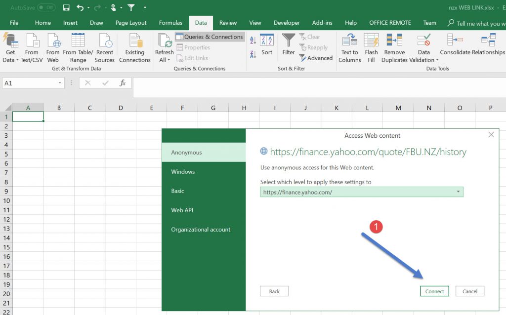 That sort of distracted me from trying to find how to connect to the Yahoo API and then found that that has been stopped and tried using the Yahoo Query Language (YQL) to get data with no success and then came to StackOverflow article on YQL that pointed to Alpha Vantage that has a free API key for financial Data. I have tried with test for FBU.NZ Fletcher Building Unit with call :