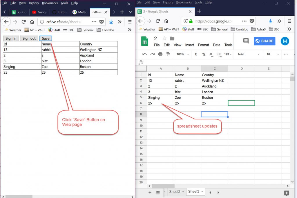 Following on from the previous post I want to try and be able to update a Google Sheet from a web page via the link.
