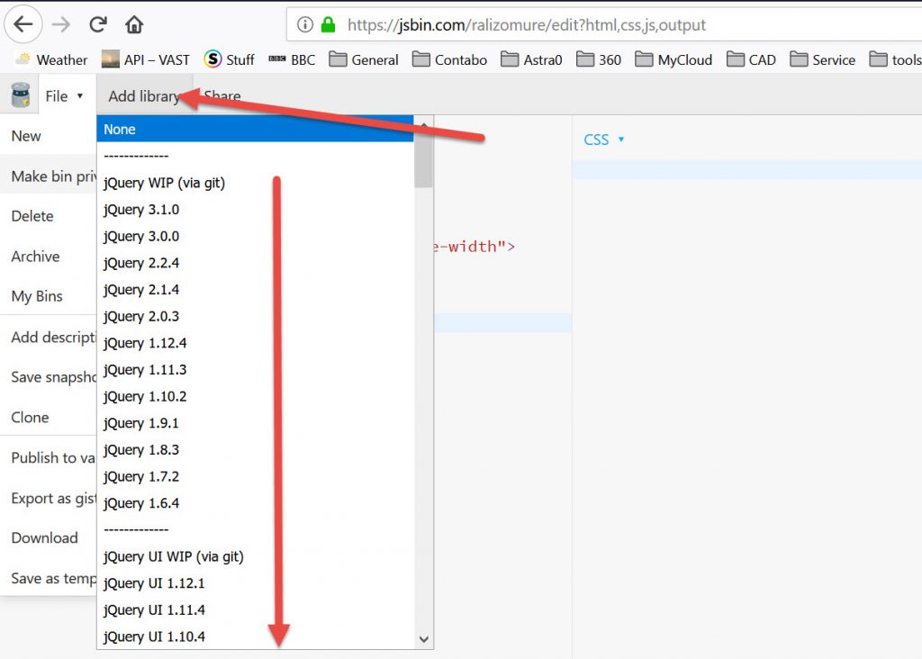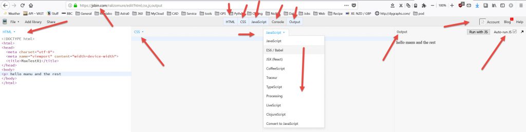 I like the idea of the library add-ons that I wasn’t aware of before, and downloading the files to use on my PC. So this is handy resource to test and develop on your own with notepad++. So the 2 programmes I will follow are CodePen & JS Bin as I can download files directly to my PC. Its also nice having a copy on the cloud to play with too. This allows you to tweek the code when you are out and about. Something I do when I’m having problems with getting code to work. I keep at it until either I give up in defeat or get it to work.
