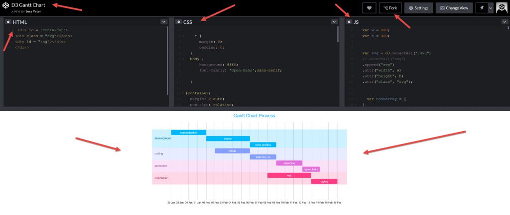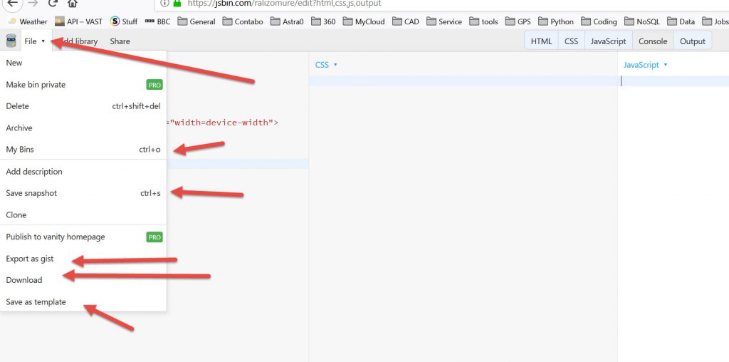 There were a few features that appeal to me about JSBin. One was it put the links to external libraries into the code and 2 that it saved your code as gists on github. Unfortunately, uploading your gists from github by changing part of a gist url as per the video below didn’t work for me at all, which is a shame as there was a lot I like about JS Bin.