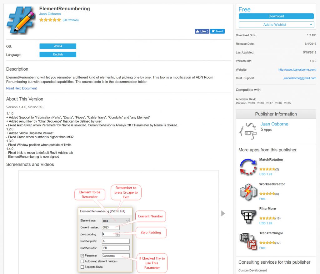 The current free numbering add in is ElementRenumbering by Juan Osborne (thank you for this tool Juan).