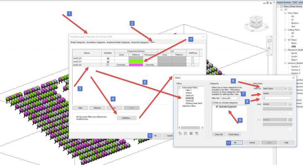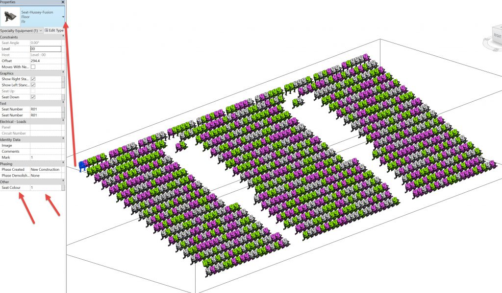 Revit- Crowd seating, visual numbering, colouring ordered and random