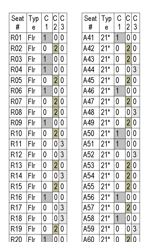 You can also do a more simple table by not itemising each separate seat and only doing it by type. In this case, floor fixed or wall fixed.