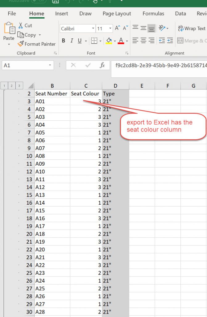 So that you can itemise each seat by number and colour and with type and count as well. Below is schedule on a sheet for 1010 seats.