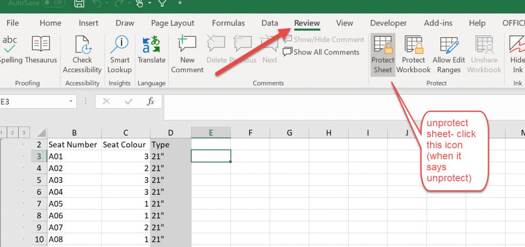 So after unprotecting the sheet