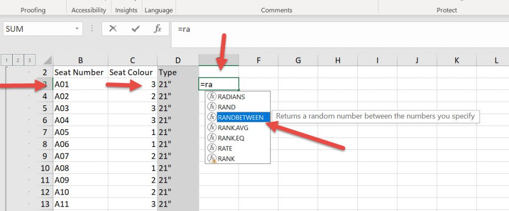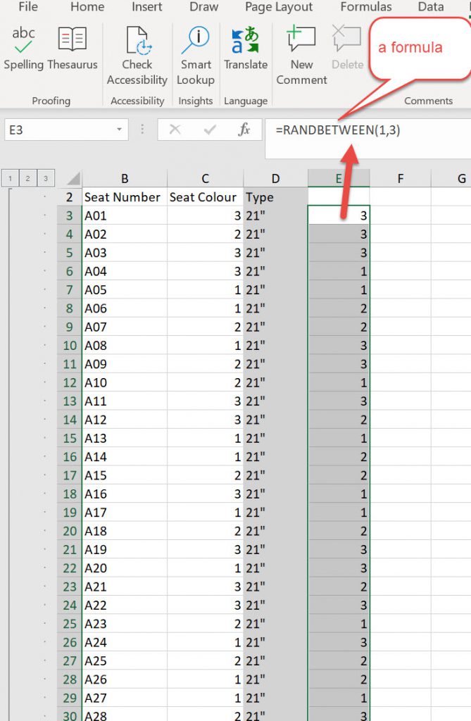 This populates the Seat Colour column and then you can adjust it by eye./ If you do not like it then re-run the radomiser again and you’ll get different numbers as a base start point