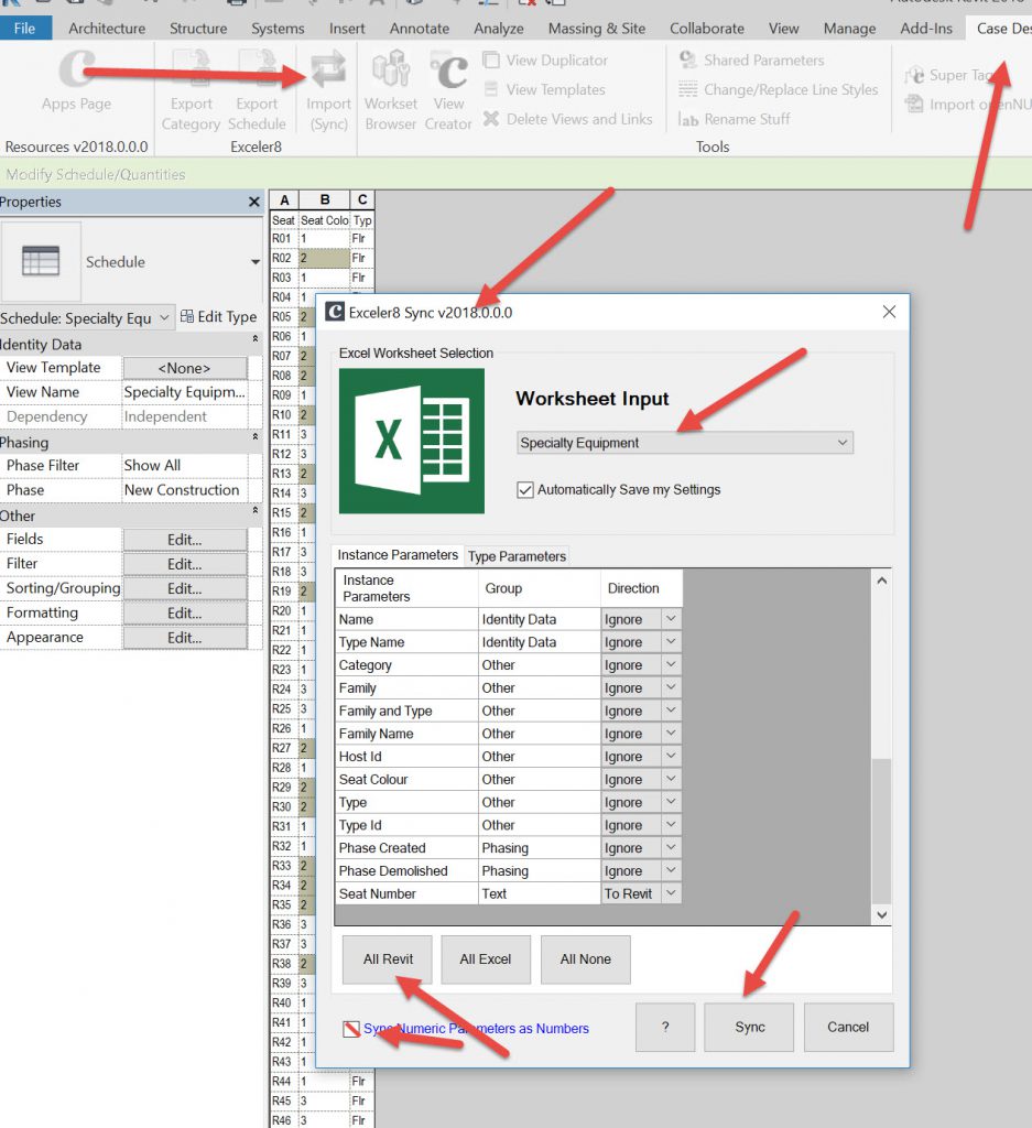 This is another method of exporting/importing data free form to Revit/Excel using the Case free apps.