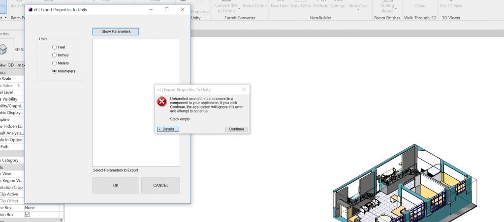 I downloaded this but I only have a version of 18.0.0.420 . “Export to Unity” will work only with Revit version 2018.1 or higher. So I cannot even try it out. Very frustrating.