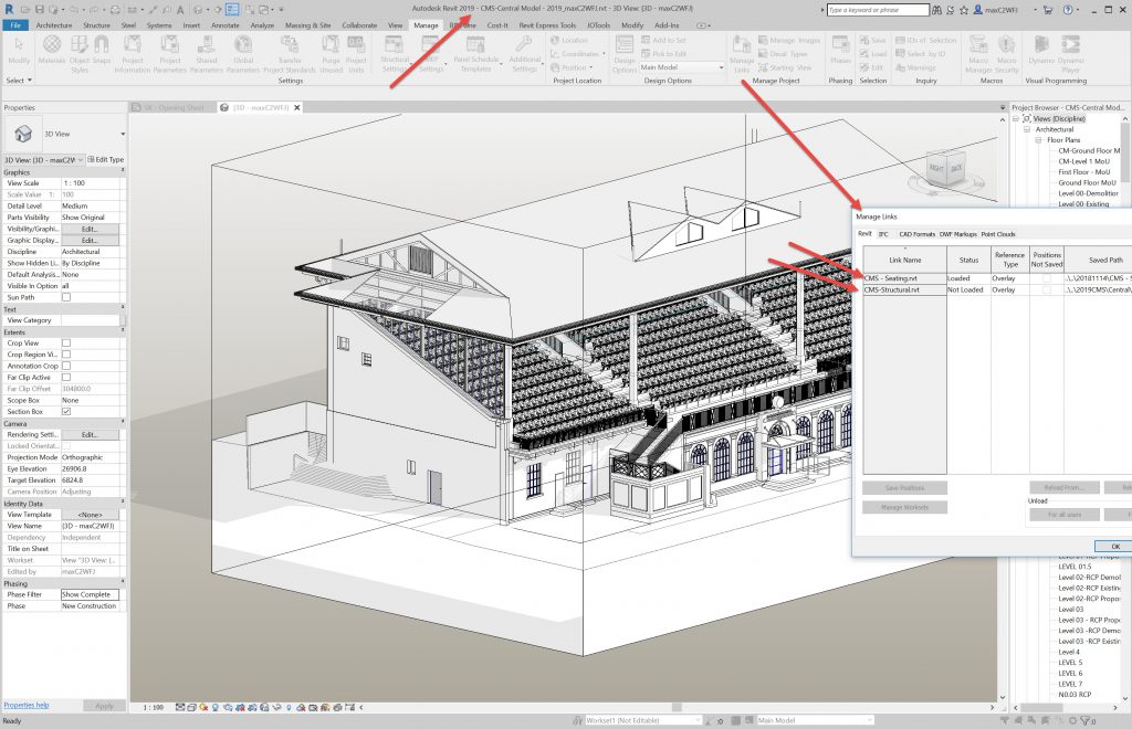 The file is about 89.5Mb with two linked files, the seating and the structure. It exported to IFC quite quickly, as in 1-3 minutes. The file size for the IFC export is 59MB. A bit smaller than the original RVT file