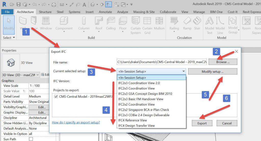 Export from Rvt 2019 to IFC